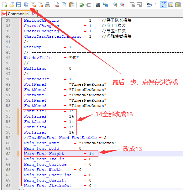 使用800*800窗口的玩家把下面这个路径里的14数值改成13即可,使用大窗口1280*960窗口的朋友不用改