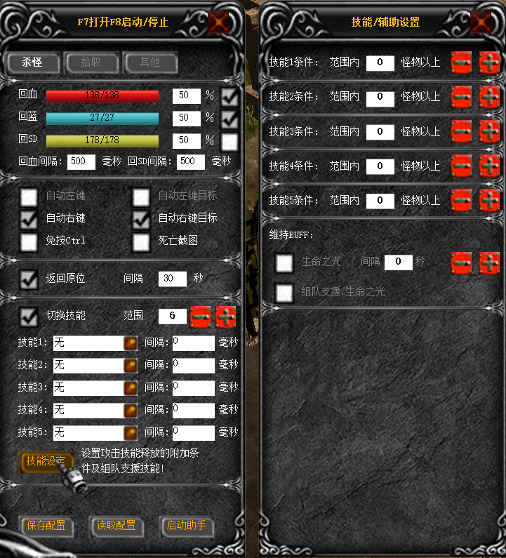 F5助手适合PK快速喝血瓶,开局适合物理挂机打怪手动挂机砍怪F6启动